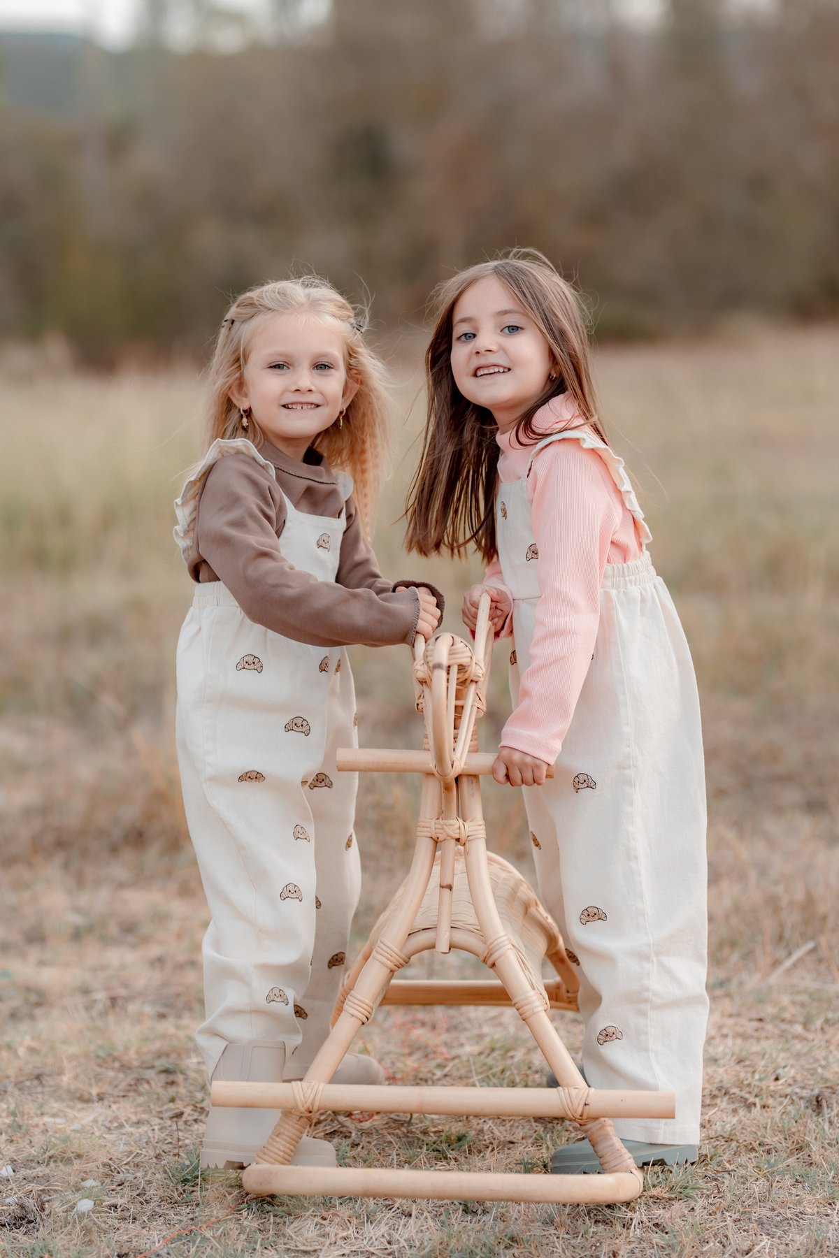 Kruvasan Nakışlı Kız Çocuk Tulum Bej