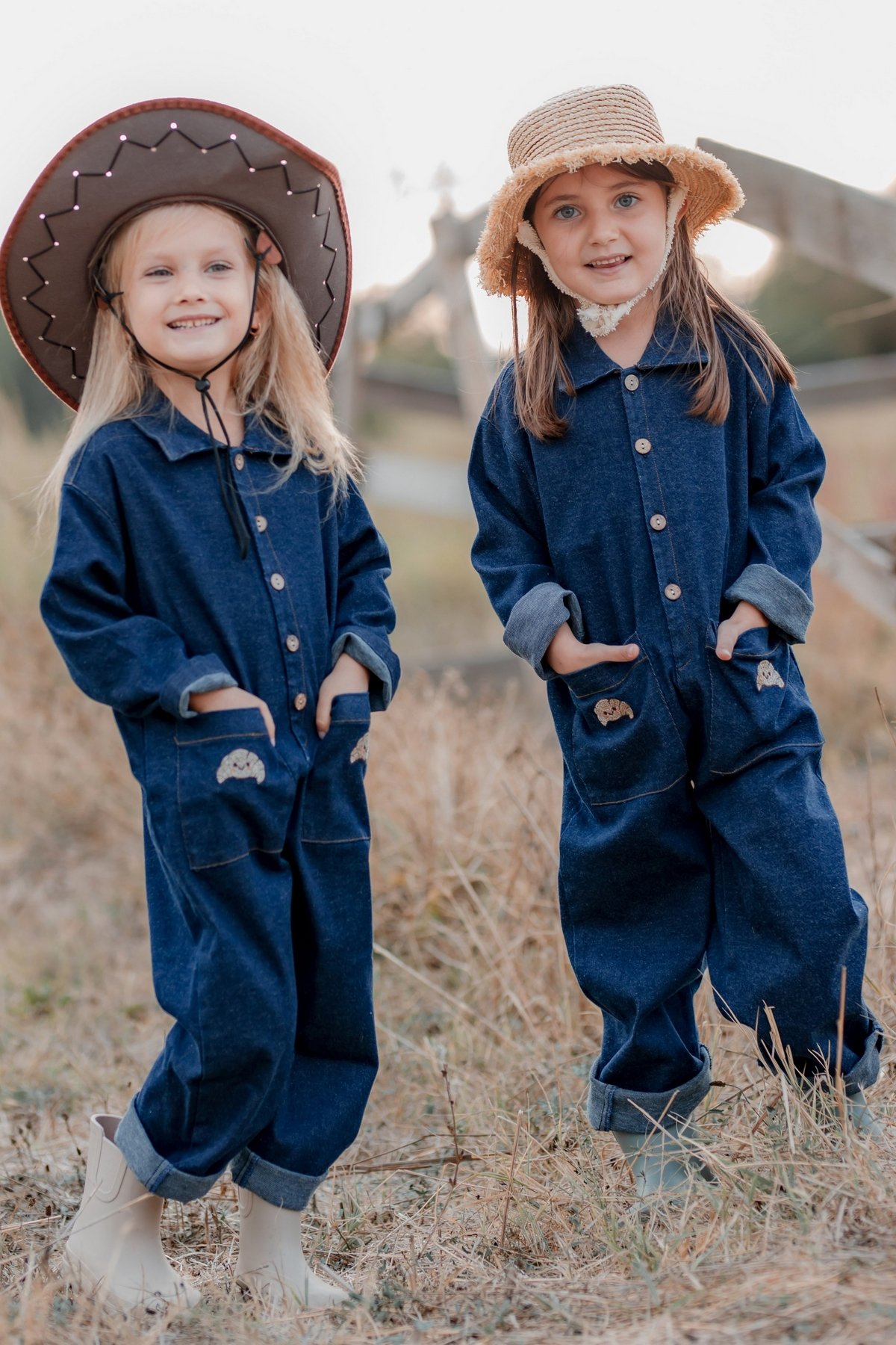 Çocuklar için konforlu ve tarz bir seçenek: Likralı kot kumaştan üretilmiş bu tulum, hem günlük kullanıma hem de özel günlere uyum sağlıyor.